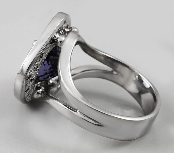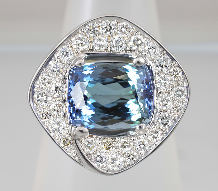 Вашему вниманию предлагается кольцо из золота 750 пробы с полихромным танзанитом и 32 бриллиантами массой 0,77 карат! Диаметр бриллиантов от 1,5 мм до 2 мм. Площадка 19 х 19 мм, высота 7 мм. Вес изделия 10,2 г. Размер 16,5. Ниже приводятся ювелирные характеристики танзанита.