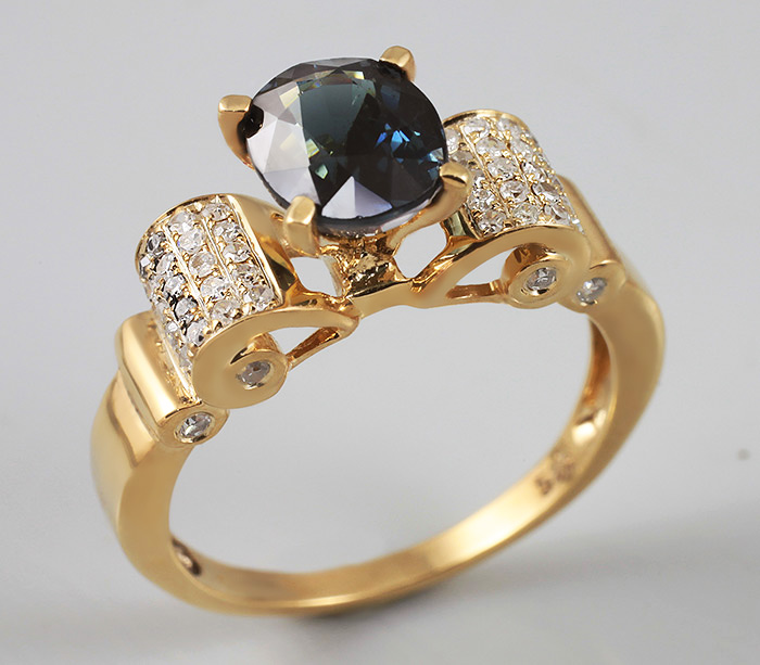 Кольцо с зеленовато-голубым турмалином и бриллиантами