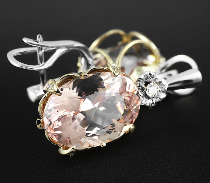 Серьги с чистейшими крупными морганитами и бриллиантами