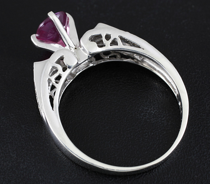 Вашему вниманию предлагается кольцо из стерлингового серебра (925 проба) c розовым сапфиром и бриллиантами! Диаметр бриллиантов 1 мм. Площадка 20 х 8 мм, высота 9 мм. Вес изделия 2,8 г. Размер 17,5. Ниже приводятся ювелирные характеристики сапфира.