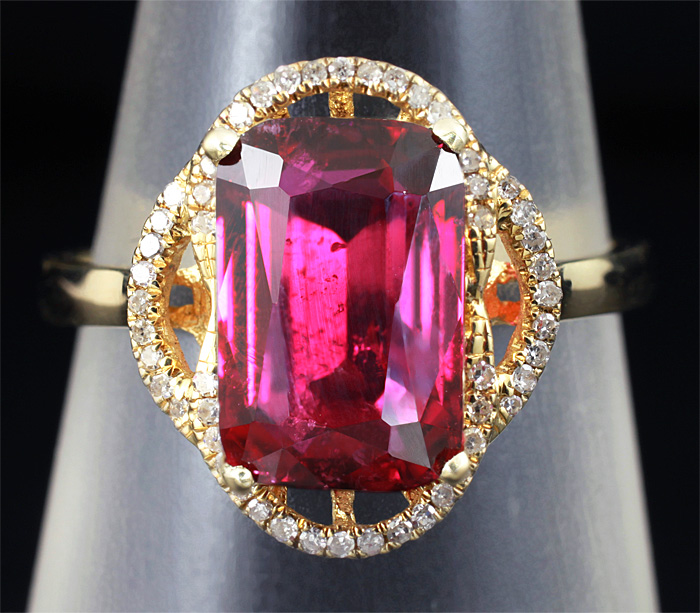 Кольцо c рубеллитом турмалином и бриллиантами