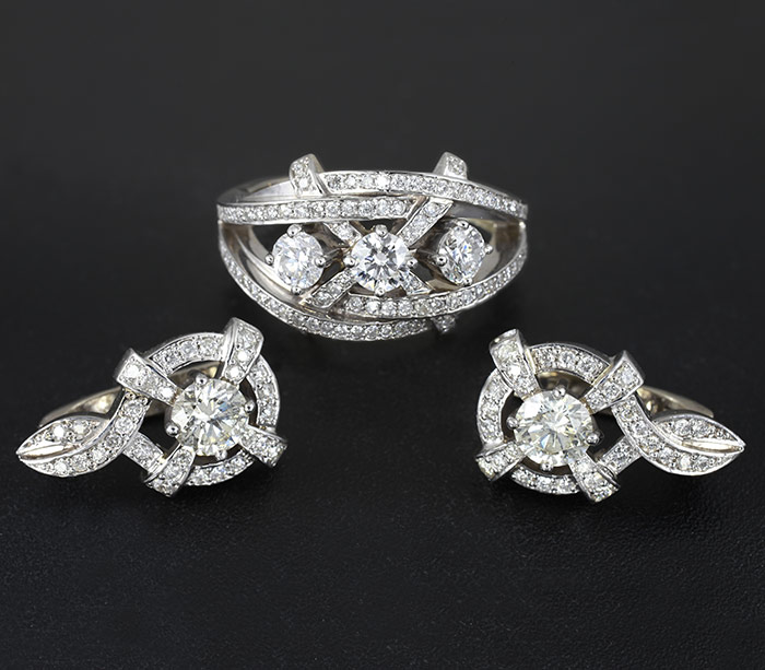 Вашему вниманию предлагается комплект (кольцо + серьги) из золота 585 пробы с бриллиантами! Диаметр вставок от 1 мм до 5 мм. Вес комплекта 13,7 г.