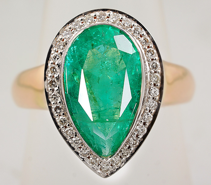 Вашему вниманию предлагается кольцо из золота 585 пробы с уральским изумрудом и бриллиантами! Диаметр бриллиантов 1 мм. Площадка 17 х 12 мм, высота 8 мм. Вес изделия 6,5 г. Размер регулируемый: 18,5 и выше. Ниже приводятся ювелирные характеристики изумруда.