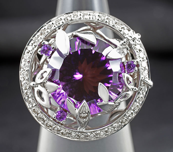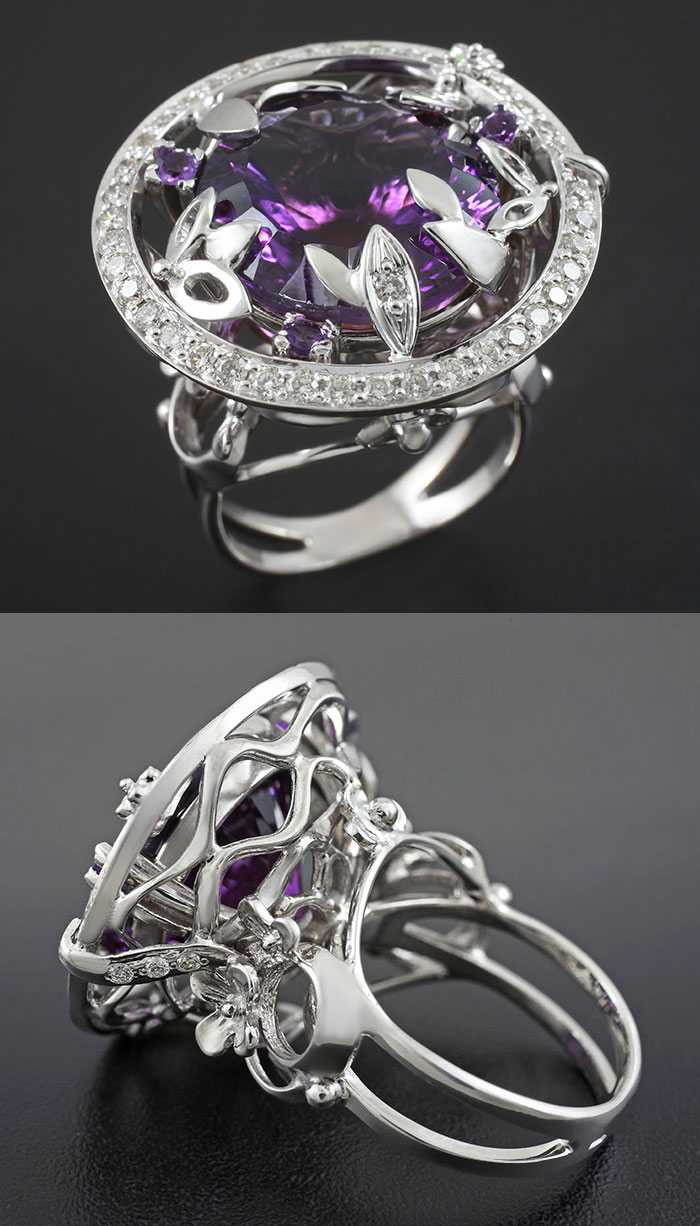 Комплект (кольцо + кулон) с уругваскими аметистами и бриллиантами