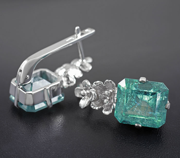 Вашему вниманию предлагаются серьги из золота 585 пробы с параиба турмалинами! Площадка серег 21 х 11 мм. Вес пары 6,5 г. Ниже приводятся ювелирные характеристики турмалинов.