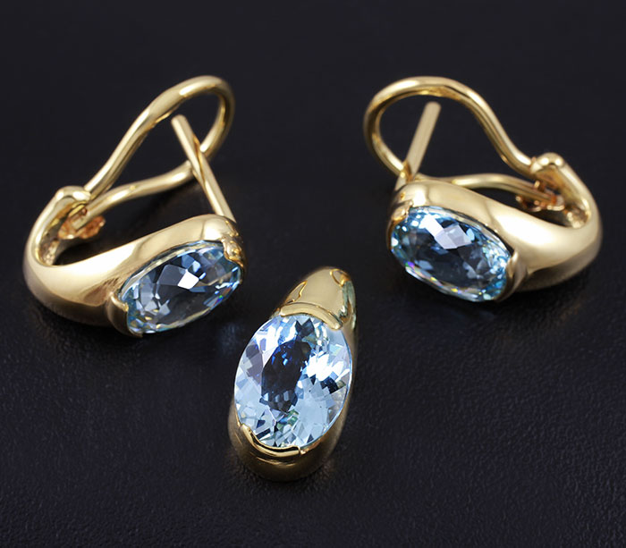 Вашему вниманию предлагается комплект (серьги + кулон) из 585 пробы с аквамаринами! Вес комплекта 5,3 г.