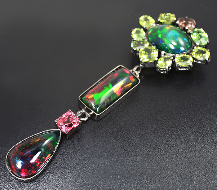 Кулон с черными опалами и самоцветами