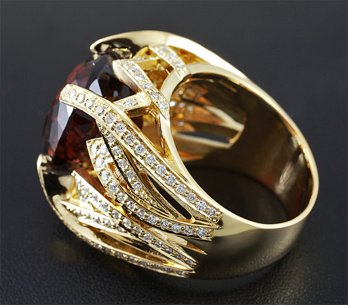 Кольцо c чистейшим полихромным турмалином и бриллиантами