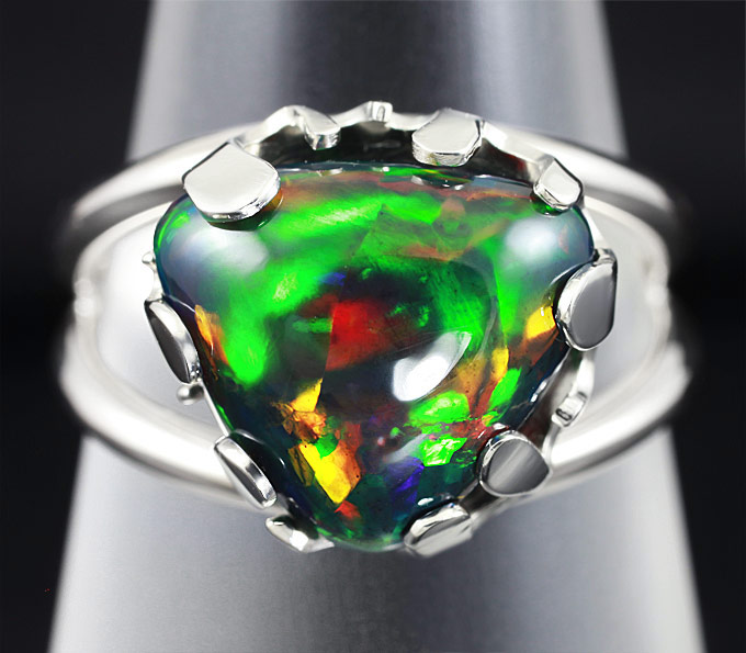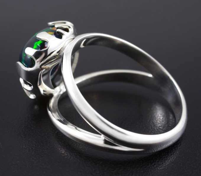 Вашему вниманию предлагается кольцо из стерлингового серебра (925 проба) c кристаллическим черным опалом! Основные цвета опалесценции: красный, желтый, зеленый. Площадка 13 х 12 мм, высота 8 мм. Вес изделия 3,7 г. Размер 16,5. Ниже приводятся ювелирные характеристики опала.