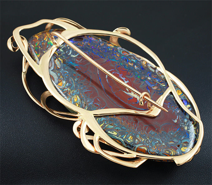 Брошь/кулон с австралийским болдер опалом, сапфирами и цаворитами гранатами