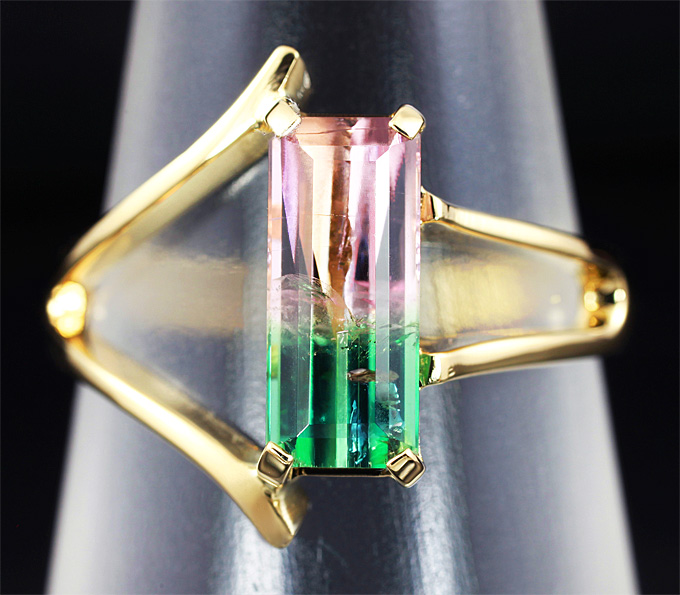 Вашему вниманию предлагается кольцо из золота 750 пробы с полихромным турмалином! Площадка 15 х 5 мм, высота 5 мм. Вес изделия 3,3 г. Размер 16,5. Ниже приводятся ювелирные характеристики турмалина.