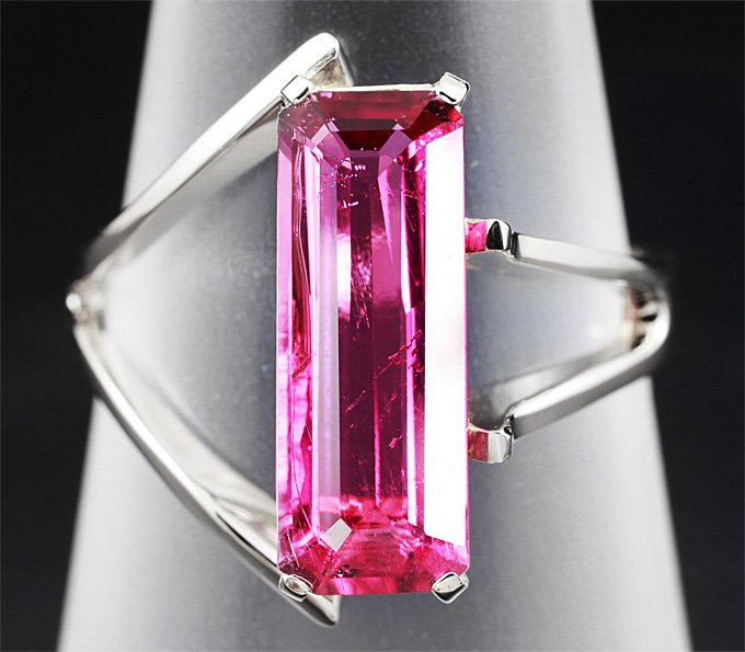 Вашему вниманию предлагается кольцо из золота 585 пробы c пурпурно-красным «неоновым» турмалином! Ширина площадки 19 мм, высота 5 мм. Вес изделия 3,6 г. Размер регулируемый: 18,5 и выше. Ниже приводятся ювелирные характеристики турмалина.