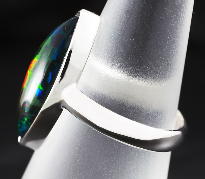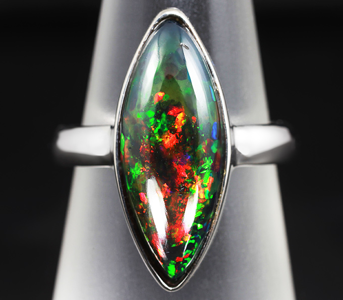 Вашему вниманию предлагается кольцо из золота 585 пробы с кристаллическим черным опалом! Основные цвета опалесценции: красный, зеленый и желтый. Площадка 22 х 9 мм, высота 6 мм. Вес изделия 4,4 г. Размер 18. Ниже приводятся ювелирные характеристики опала.