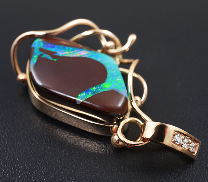 Кулон с австралийским болдер опалом и бриллиантами