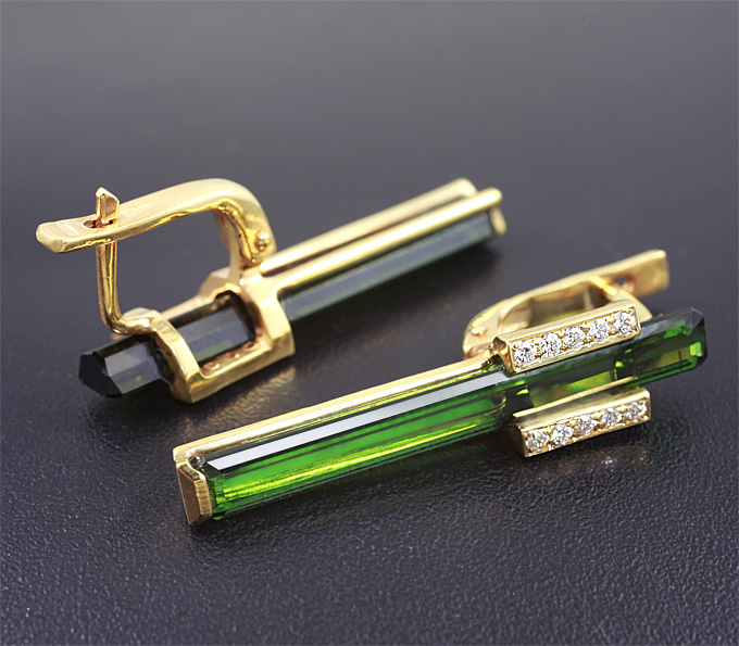 Серьги с зелеными турмалинами и бриллиантами
