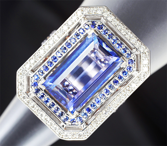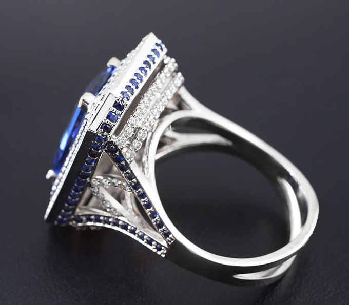 Кольцо c танзанитом, синими сапфирами и бриллиантами