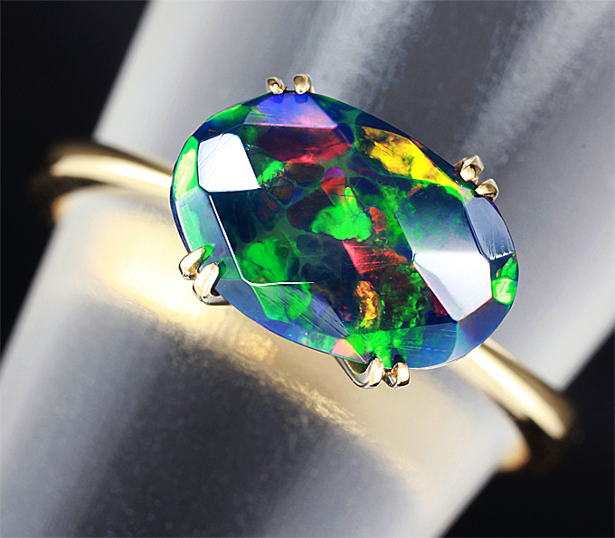 Кольцо с ограненным черным опалом