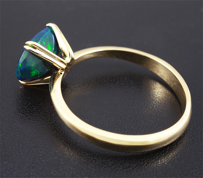 Вашему вниманию предлагается кольцо из золота 585 пробы с ограненным черным опалом! Основные цвета опалесценции: красный, желтый, зеленый и синий. Площадка 11 х 8 мм, высота 7 мм. Вес изделия 2,9 г. Размер 18. Ниже приводятся ювелирные характеристики опала.