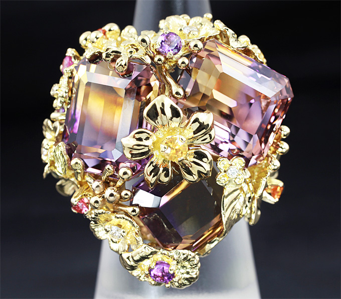 Кольцо c аметринами, аметистами, сапфирами и бриллиантами