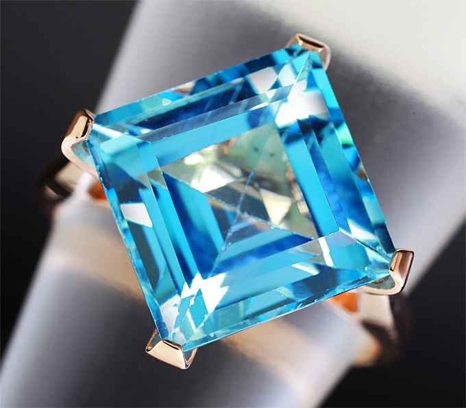 Вашему вниманию предлагается кольцо из золота 585 пробы с голубым топазом! Площадка 17 х 17 мм, высота 10 мм. Вес изделия 6,5 г. Размер 19. Ниже приводятся ювелирные характеристики вставки.