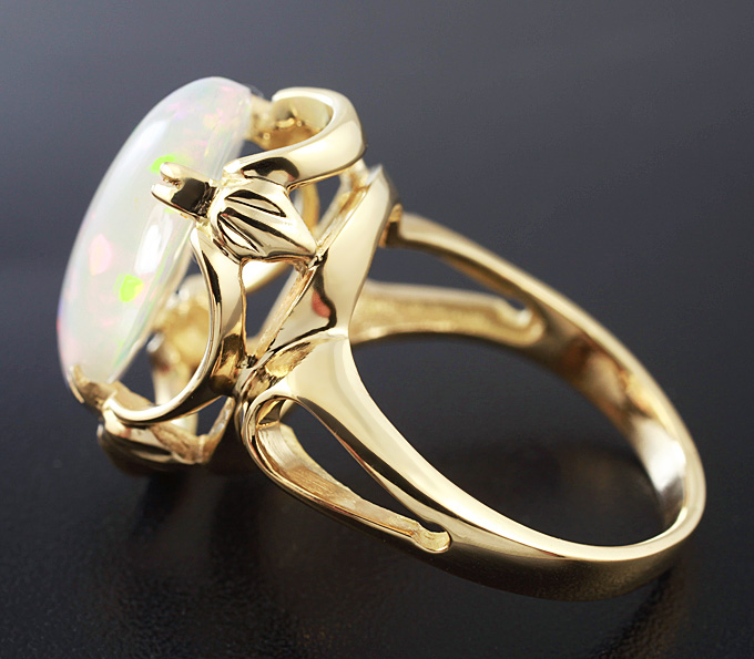 Вашему вниманию предлагается кольцо из золота 750 пробы с кристаллическим Welo опалом! Основные цвета опалесценции: красный, желтый, зеленый и синий. Площадка 19 х 15 мм, высота 11 мм. Вес изделия 6,8 г. Размер 16,5. Ниже приводятся ювелирные характеристики вставки.