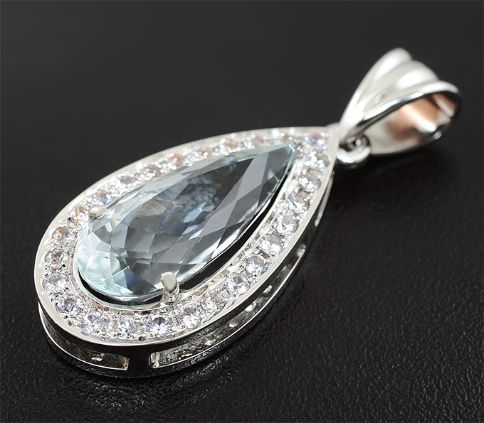 Вашему вниманию предлагается кулон из золота 585 с аквамарином и лейкосапфирами! Диаметр сапфиров 1,5 мм. Размеры кулона с петлей 32 х 13 мм. Вес 3,9 г. Ниже приводятся ювелирные характеристики аквамарина.