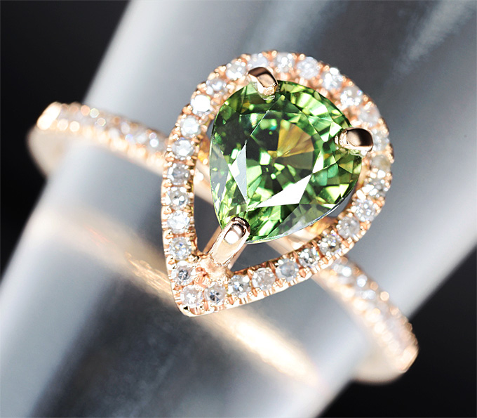 Кольцо с зеленым сапфиром и бриллиантами