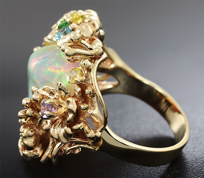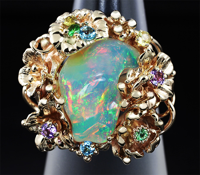 Кольцо с эфиопским опалом и самоцветами