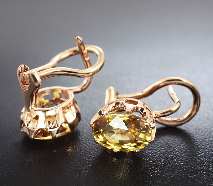 Серьги с золотистыми цирконами