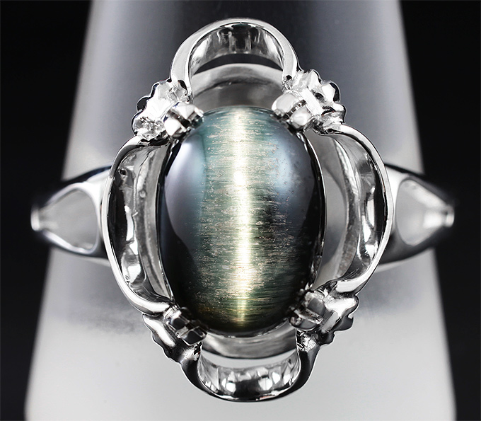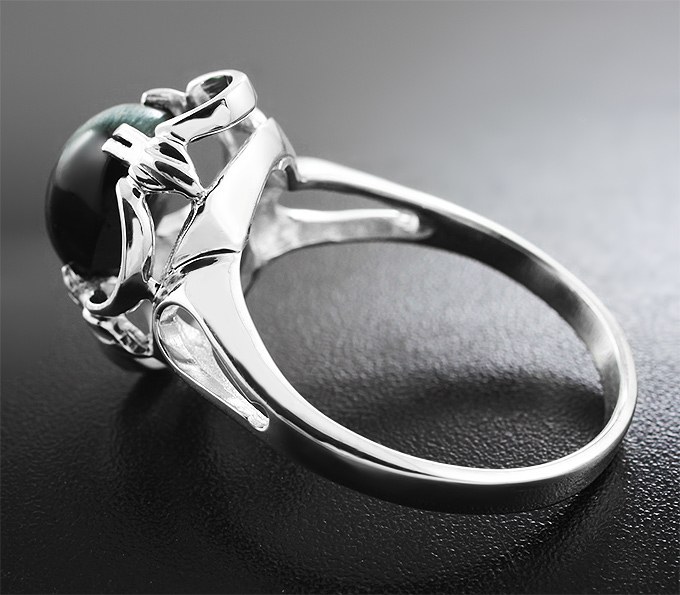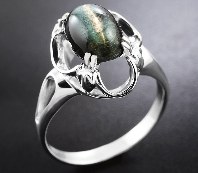 Кольцо, инкрустированное турмалином с эффектом кошачьего глаза