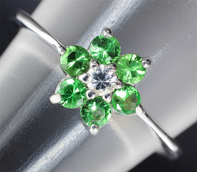 Кольцо c цаворитами гранатами и лейкосапфиром