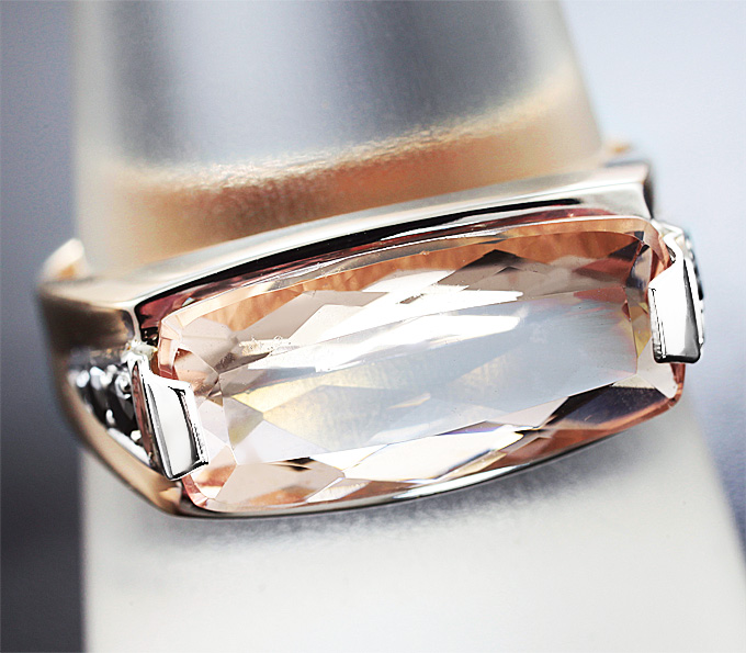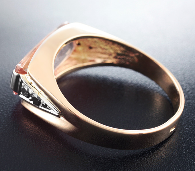 Кольцо c морганитом и черными бриллиантами
