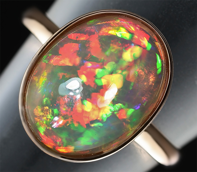 Вашему вниманию предлагается кольцо из золота 585 пробы с эфиопским кристаллическим опалом! Основные цвета опалесценции: красный, желтый и зеленый. Площадка 15 х 12 мм, высота 6 мм. Вес изделия 2,9 г. Размер 19. Ниже приводятся ювелирные характеристики вставки.