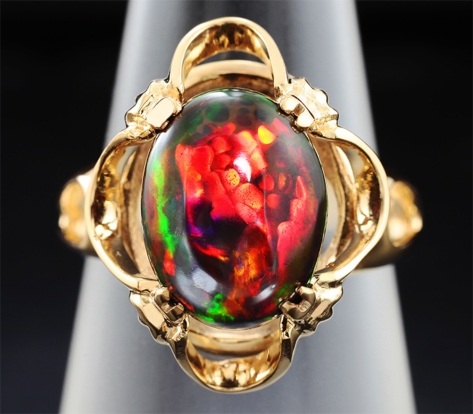 Вашему вниманию предлагается кольцо из золота 585 пробы с кристаллическим черным опалом! Размеры вставок 12 х 9 мм. Площадка 19 х 15 мм, высота 11 мм. Вес изделия 5,3 г. Размер 16,75. Ниже приводятся ювелирные характеристики вставки.