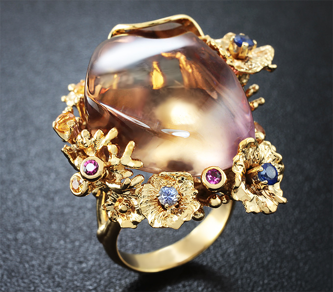 Кольцо c кабошоном аметрина и разноцветными сапфирами