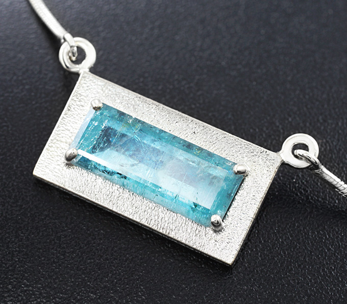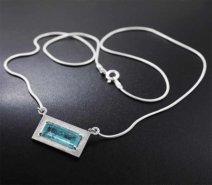 Вашему вниманию предлагается кулон из текстурного стерлингового серебра (925 проба) с сине-зеленым турмалином! Изделие матировано. Площадка кулона 24 х 13 мм. Длина по цепочке 485 мм. Вес 26,2 г. Ниже приводятся ювелирные характеристики вставки.