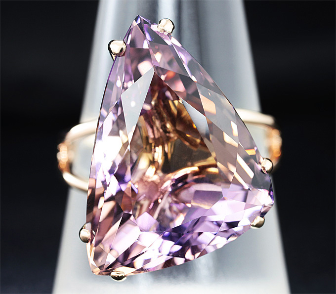 Вашему вниманию предлагается кольцо из золота 585 пробы с чистейшим аметрином! Площадка 22 х 17 мм, высота 13 мм. Вес изделия 7,5 г. Размер 19,5. Ниже приводятся ювелирные характеристики вставки.