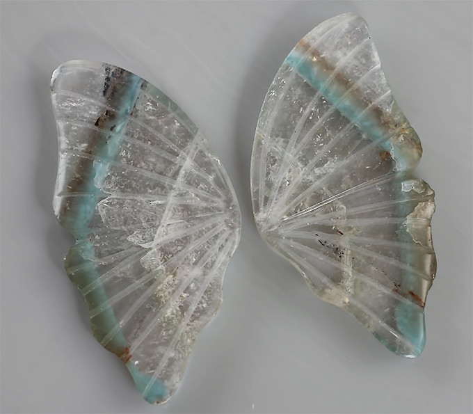Кулон, инкрустированный парным резным кварцем с гилалитом и разноцветными сапфирами