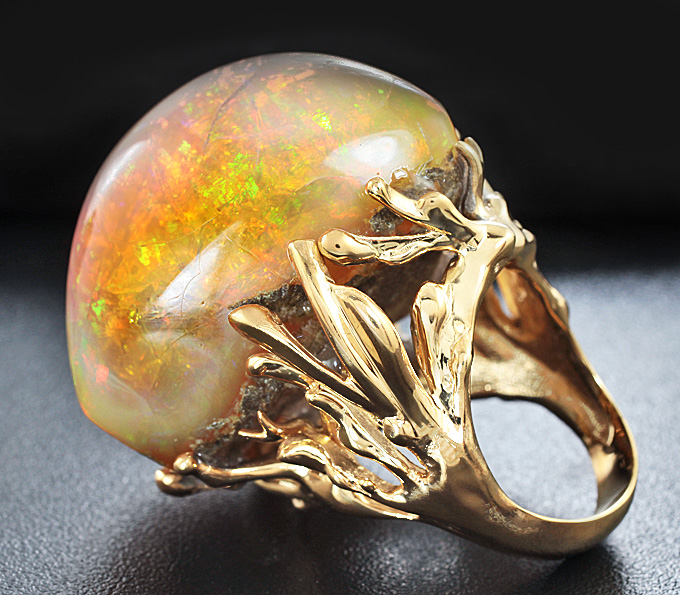Кольцо c кристаллическим Welo опалом эксклюзивного размера