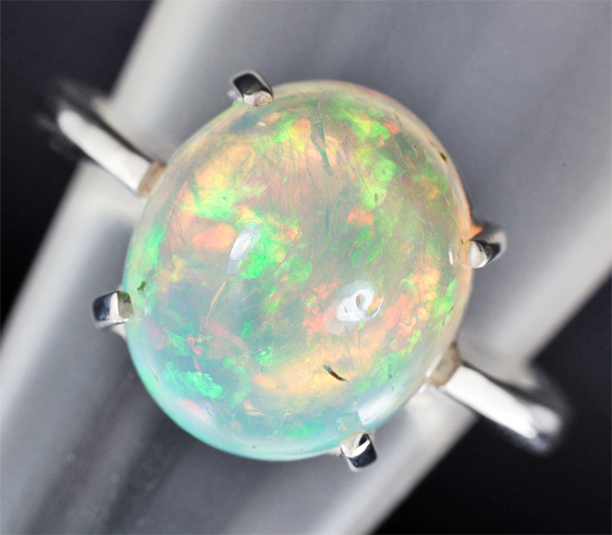 Вашему вниманию предлагается кольцо из стерлингового серебра (925 проба) c кристаллический Welo опалом! Основные цвтеа опалесценции: красный, желтый и зеленый. Площадка 12 х 10 мм, высота 8 мм. Вес изделия 3,4 г. Размер 18. Ниже приводятся ювелирные характеристики вставки.
