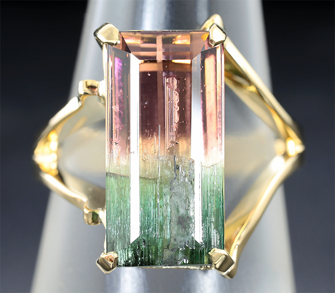 Вашему вниманию предлагается кольцо из золота 750 пробы c арбузным турмалином! Площадка 19 х 10 мм, высота 7 мм. Вес изделия 5,9 г. Размер 18. Ниже приводятся ювелирные характеристики вставки.