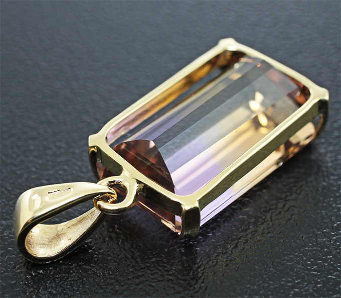 Вашему вниманию предлагается кулон из золота 585 пробы с аметрином! Размеры вставок 17 х 11 мм. Размеры кулона с петлей 29 х 12 мм. Вес 4,1 г. Ниже приводятся ювелирные характеристики вставки.