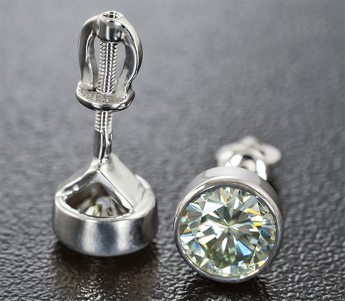 Вашему вниманию предлагаются пусеты из золота 585 пробы с бесцветными муассанитами! Площадка пусет 7 мм. Вес пары 2,3 г. Ниже приводятся ювелирные характеристики вставок.
