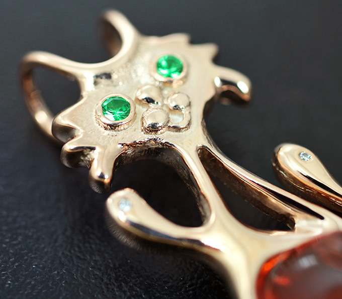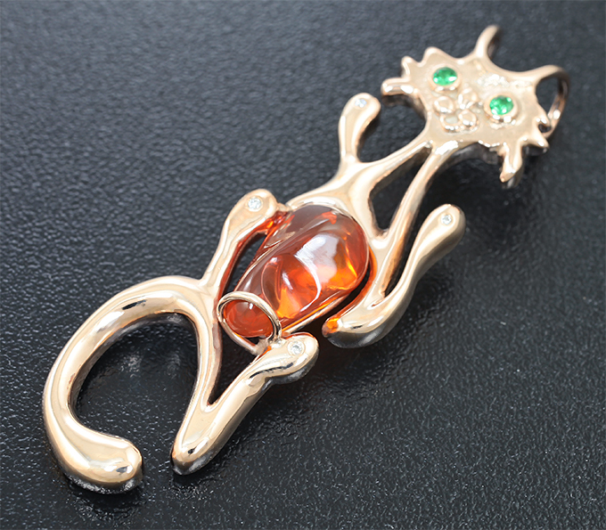 Кулон с мексиканским огненным опалом, цаворитами гранатами и 4 бриллиантами