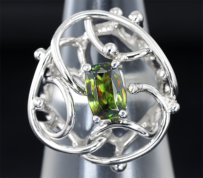 Вашему вниманию предлагается комплект (кольцо + кулон) из стерлингового серебра (925 проба) с зелеными сфенами! Вес комплекта 12,1 г.