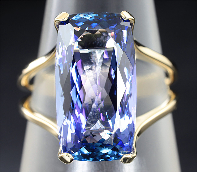 Вашему вниманию предлагается кольцо из золота 585 пробы с чистейшим крупным танзанитом! Площадка 17 х 9 мм, высота 7 мм. Вес изделия 4,3 г. Размер 18. Ниже приводятся ювелирные характеристики вставки.