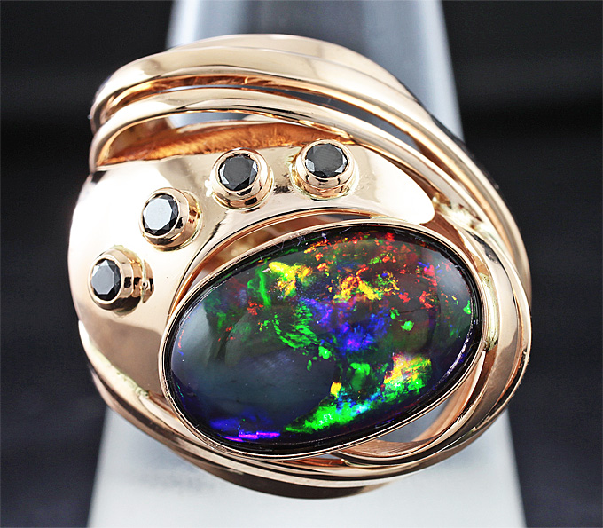 Комплект с черными опалами и бриллиантами