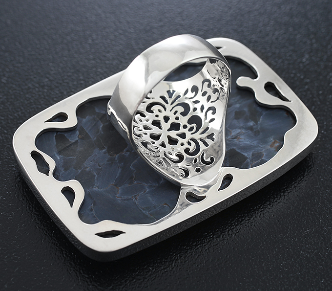 Вашему вниманию предлагается кольцо из стерлингового серебра (925 проба) c петерситом! Площадка 48 х 32 мм, высота 6 мм. Вес изделия 25,3 г. Размер 18,25. Ниже приводятся ювелирные характеристики вставки.