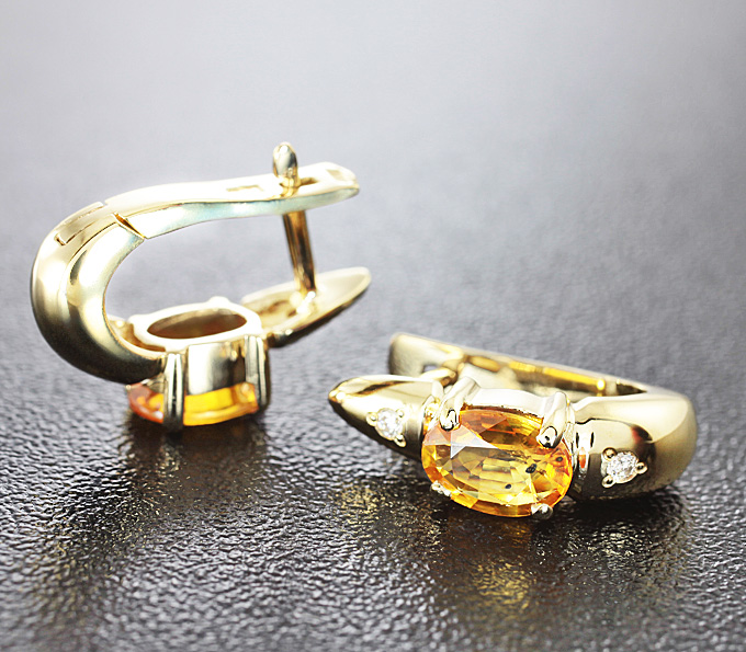 Вашему вниманию предлагаются серьги из желтого золота 585 пробы с сапфирами и бриллиантами! Диаметр дополнительной инкрустации 1,5 мм. Площадка серег 18 х 5 мм. Вес пары 5 г. Ниже приводятся ювелирные характеристики вставок.