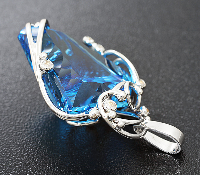 Вашему вниманию предлагается кулон из белого золота 585 пробы с роскошным топазом авторской огранки и бесцветными цирконами! Диаметр дополнительной инкрустации 1,5 мм и 2 мм. Размеры кулона с петлей 45 х 25 мм. Вес 17,7 г. Ниже приводятся ювелирные характеристики топаза.